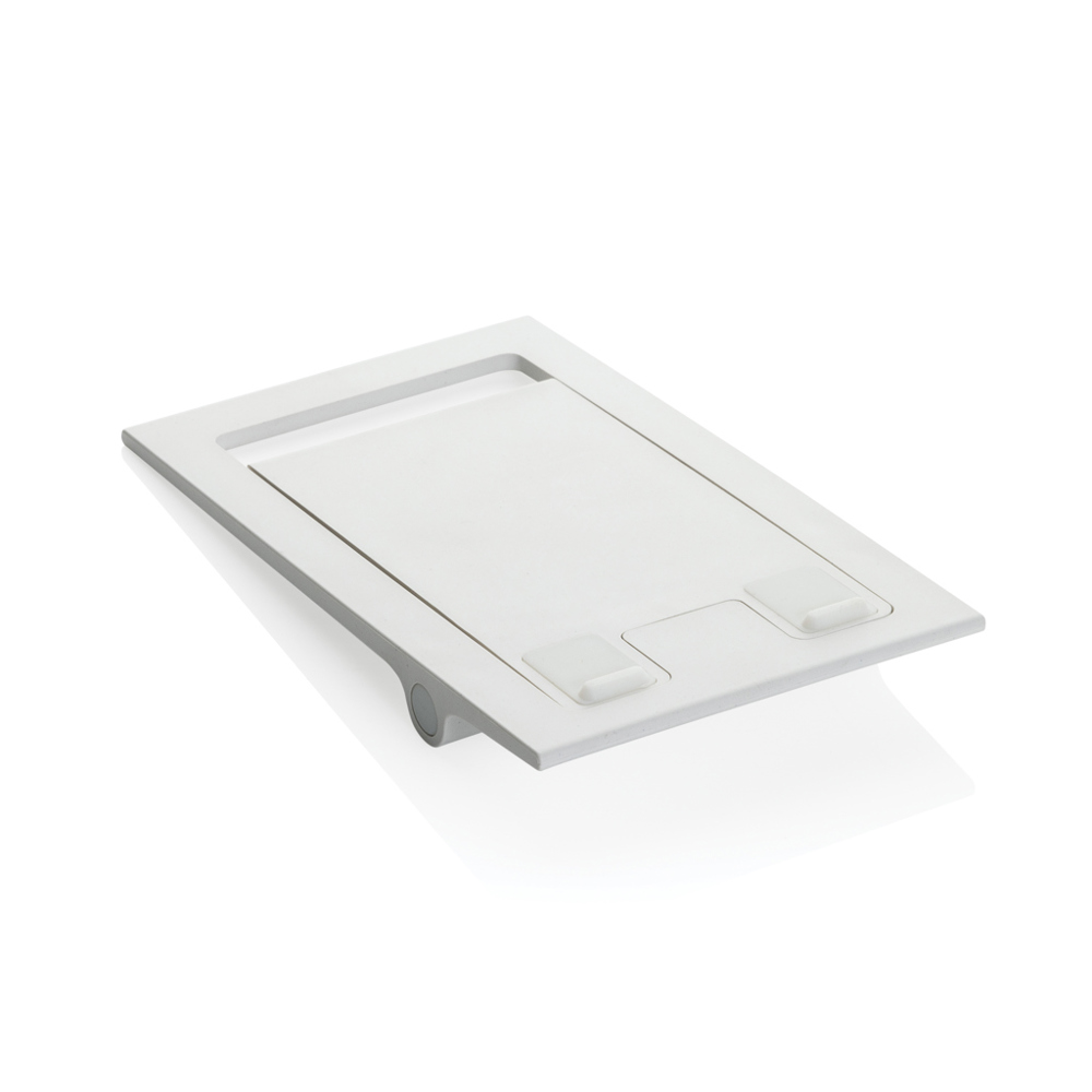 Flacher und faltbarer Telefonständer aus RSC recyceltem ABS. Der Ständer wird flach und gefaltet geliefert und kann zu einem Telefonständer aufgeklappt werden, der für Telefone aller Größen geeignet ist. Der Ständer ist stark genug, um den Betrachtungswinkel einzustellen. Die Silikonpolsterung sorgt dafür, dass Ihr Telefon stabil gehalten wird. Gesamter recycelter Inhalt: 85%, bezogen auf das Gesamtgewicht des Artikels. Die RCS-Zertifizierung gewährleistet eine vollständig zertifizierte Lieferkette der recycelten Materialien. Verpackt in FSC®-Verpackung. PVC-frei.