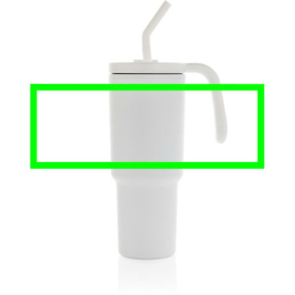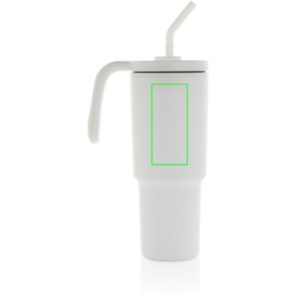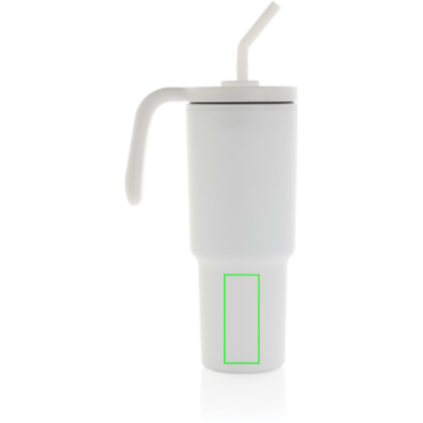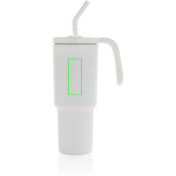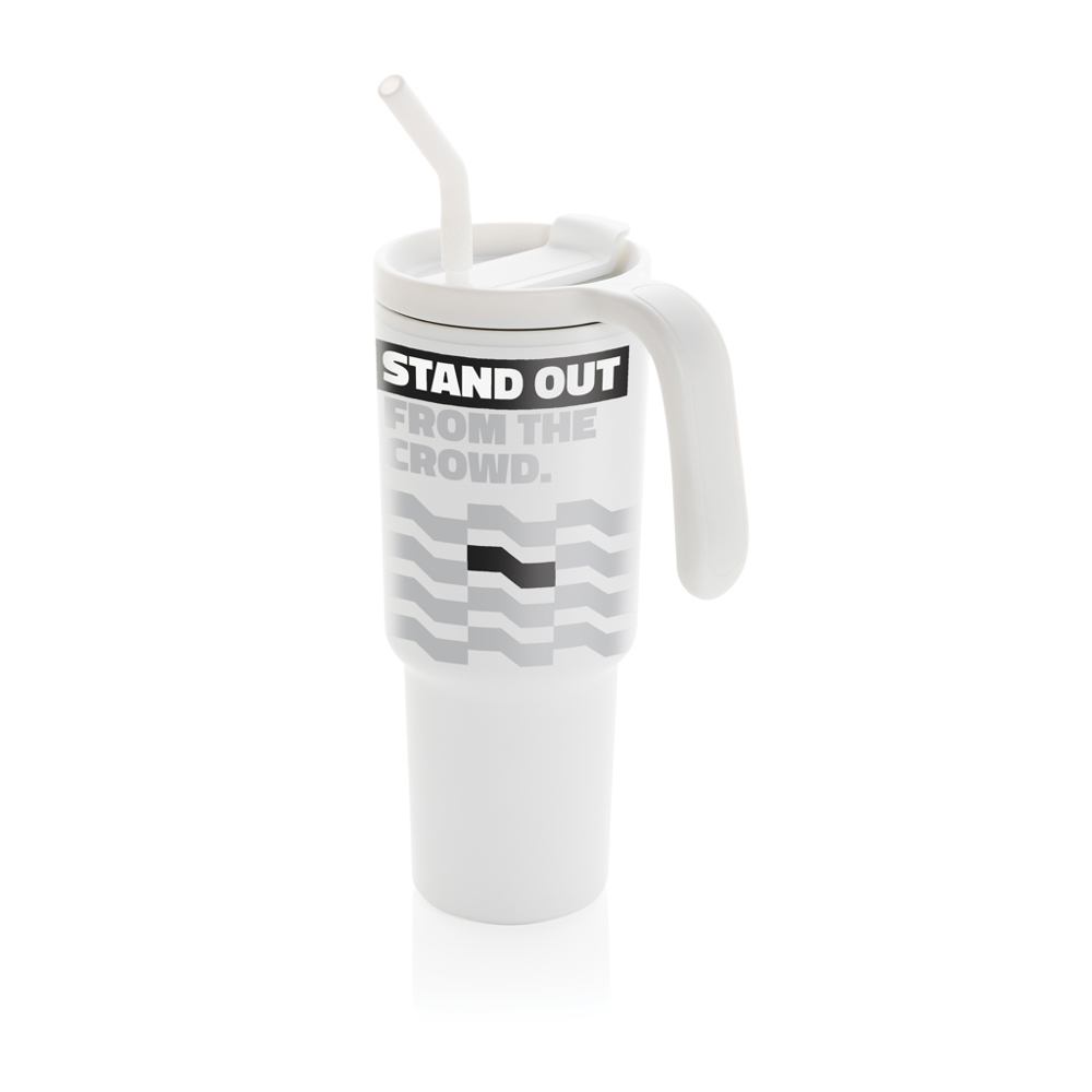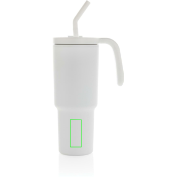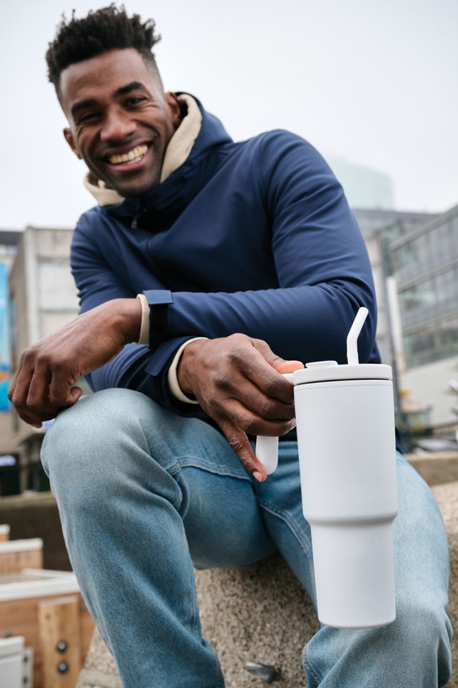 Dieser beliebte 900ml Becher eignet sich jetzt für den perfekten 360-Rundum-Druck. Hergestellt aus recycelten Materialien. Ob bei der Arbeit, beim Sport oder auf Reisen, dieser Becher ist Ihr perfekter Begleiter. Der innovative Deckel verfügt über eine drehbare Kappe mit drei Positionen: eine Trinkhalmöffnung, eine Trinköffnung und einen vollständig geschlossenen Deckel. Der ergonomische Griff mit komfortablen Griffeinsätzen sorgt für einfaches Tragen, und zudem passt der Becher durch seinen schlanken Boden in die meisten Autobecherhalter. Nur von Hand waschen. BPA-frei. Fassungsvermögen: 900ml. Inklusive FSC®-zertifizierter Kraft-Geschenkverpackung. Gesamter recycelter Inhalt: 36% bezogen auf das Gesamtgewicht des Artikels.