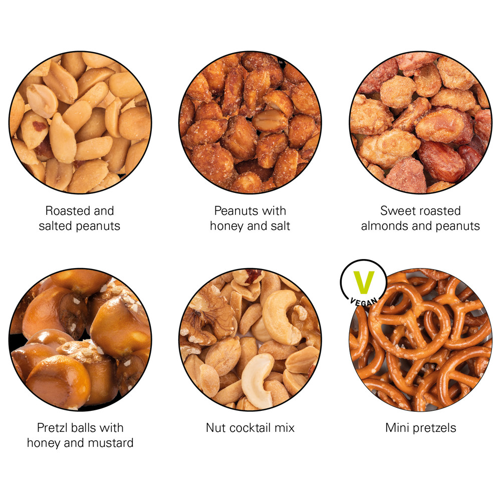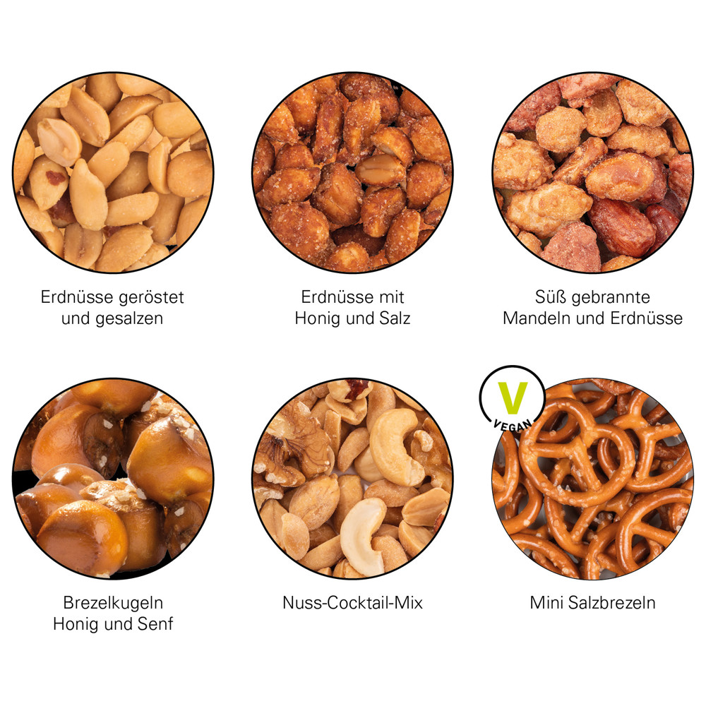 Weißblechdose rundum mit Etikett, individuell bedruckt. Frischeversiegelt mit Aufreißdeckel, Weißblech 98 % recycelbar. Inhalt: Mini Salzbrezeln, 18 g