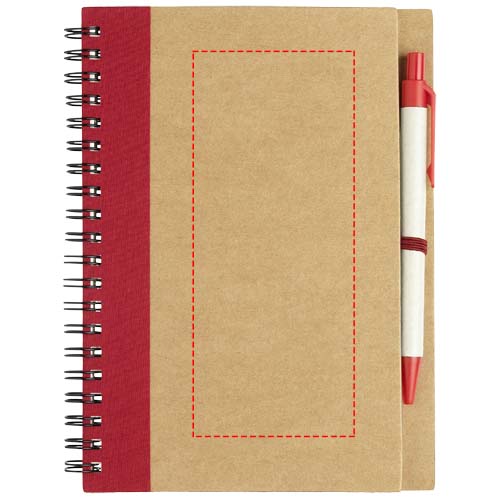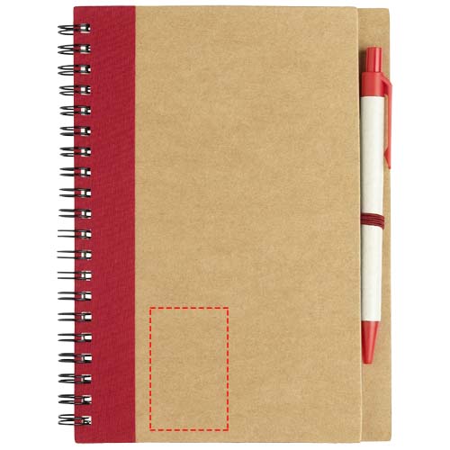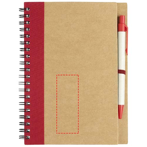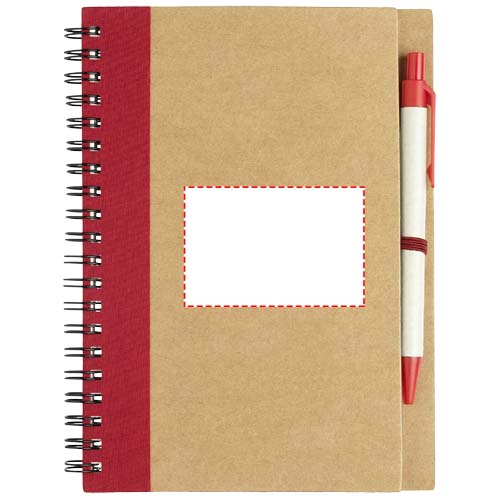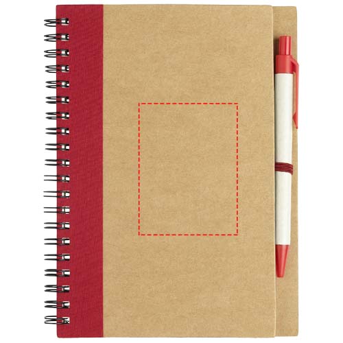 Notizbuch mit Deckel aus Recyclingkarton, 60 Blatt liniertem Recyclingpapier und passendem Stift. Das Notizbuch und der Stift sind zusammen verpackt.