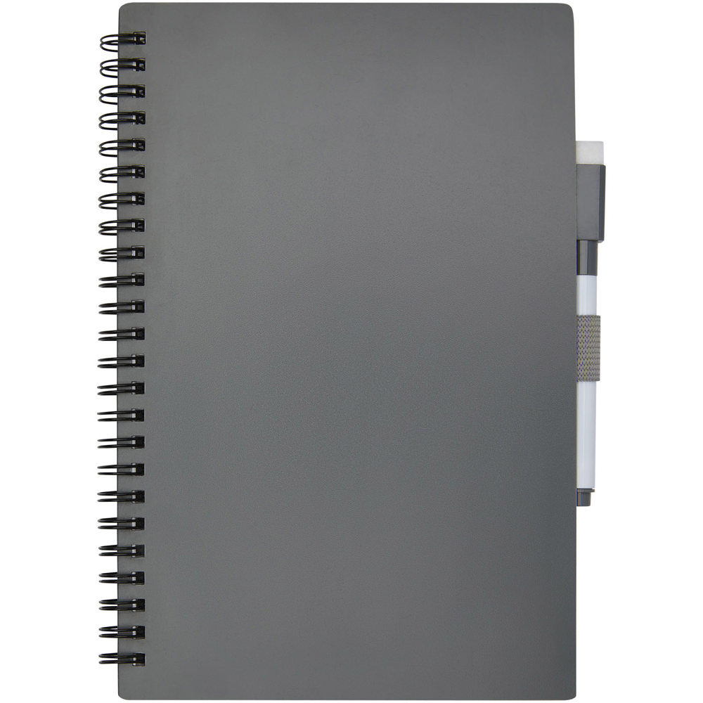 Nachhaltiges Notizbuch mit Schwerpunkt auf der Reduzierung des Papierverbrauchs, um die Umwelt zu schonen. Nach vielem Notieren, Zeichnen oder Brainstorming können die Seiten mit dem Radiergummi am Marker gesäubert werden, um sie wiederzuverwenden. Es kann auch mit einem normalen Stofftuch gereinigt werden (nicht im Lieferumfang enthalten). Enthält 20 Blatt (40 Seiten) mit halb gepunktetem und halb leerem Layout sowie einen schwarzen Schreibstift.
