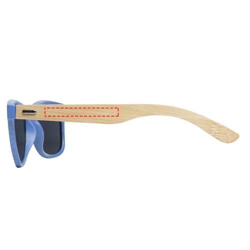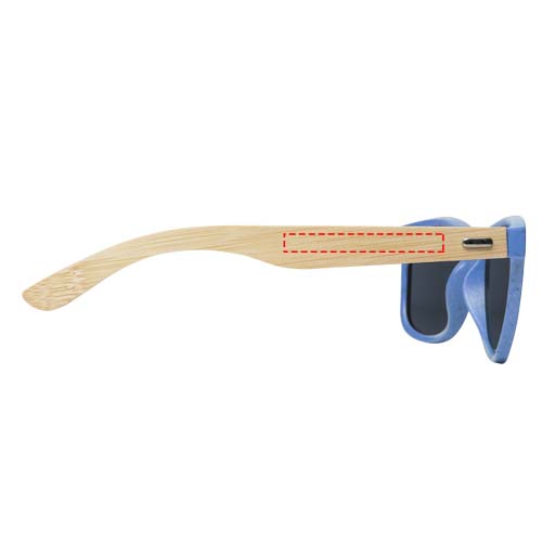 Diese nachhaltige Sonnenbrille im Retro-Design ist der ideale Werbeartikel für Sommerfestivals, Veranstaltungen oder andere sonnige Aktivitäten im Freien. Der Rahmen besteht aus einem Kunststoff-Bambus-Gemisch, das die Verwendung neuer Kunststoffe reduziert, und ist in mehreren trendigen Farben erhältlich. Die Bügel mit leichter und bequemer Passform sind aus Bambus gefertigt, der aus nachhaltigen, umweltfreundlichen und sozial verantwortlichen Quellen stammt. Diese Brille entspricht der Norm EN ISO 12312-1, hat UV400-Gläser der Kategorie 3 und ist somit die perfekte Wahl für den Schutz vor hellem Sonnenlicht. Die Lasergravur wird als nachhaltige Dekorationsmöglichkeit empfohlen.
