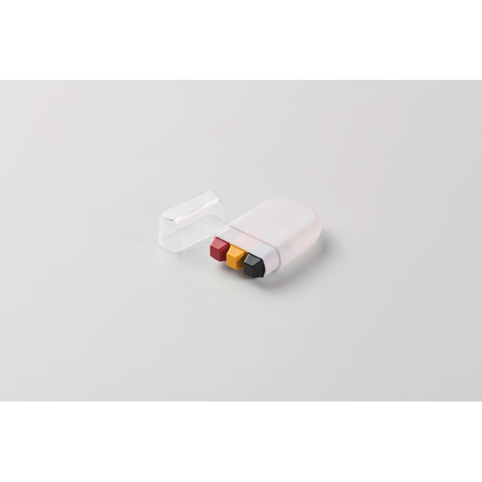 Fan Schminkstift in verschiedenen Flaggen-Farben. Wachsfarbe in PP-Gehäuse mit PS-Deckel.