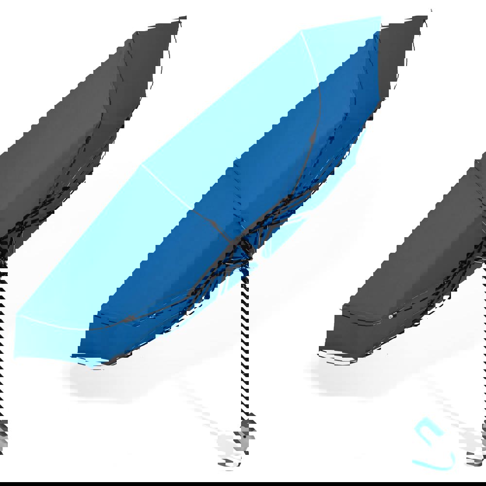 Schöner faltbarer Regenschirm mit Hülle und ergonomischem Designgriff. Die Verstrebungen des Gestells sind aus Fiberglas für zusätzliche Haltbarkeit. Das schwarze Gestell bildet einen schönen Kontrast zum bunten Schirmdach aus Pongee-Polyester.