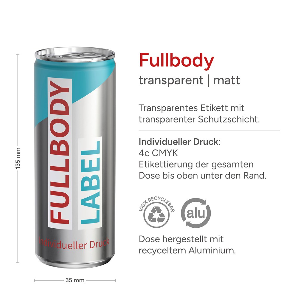 Dekoration: Fullbody transparent (Spezialfolie, hochtransparent, vollflächig, 4c CMYK + weiß, Alu Look matt).