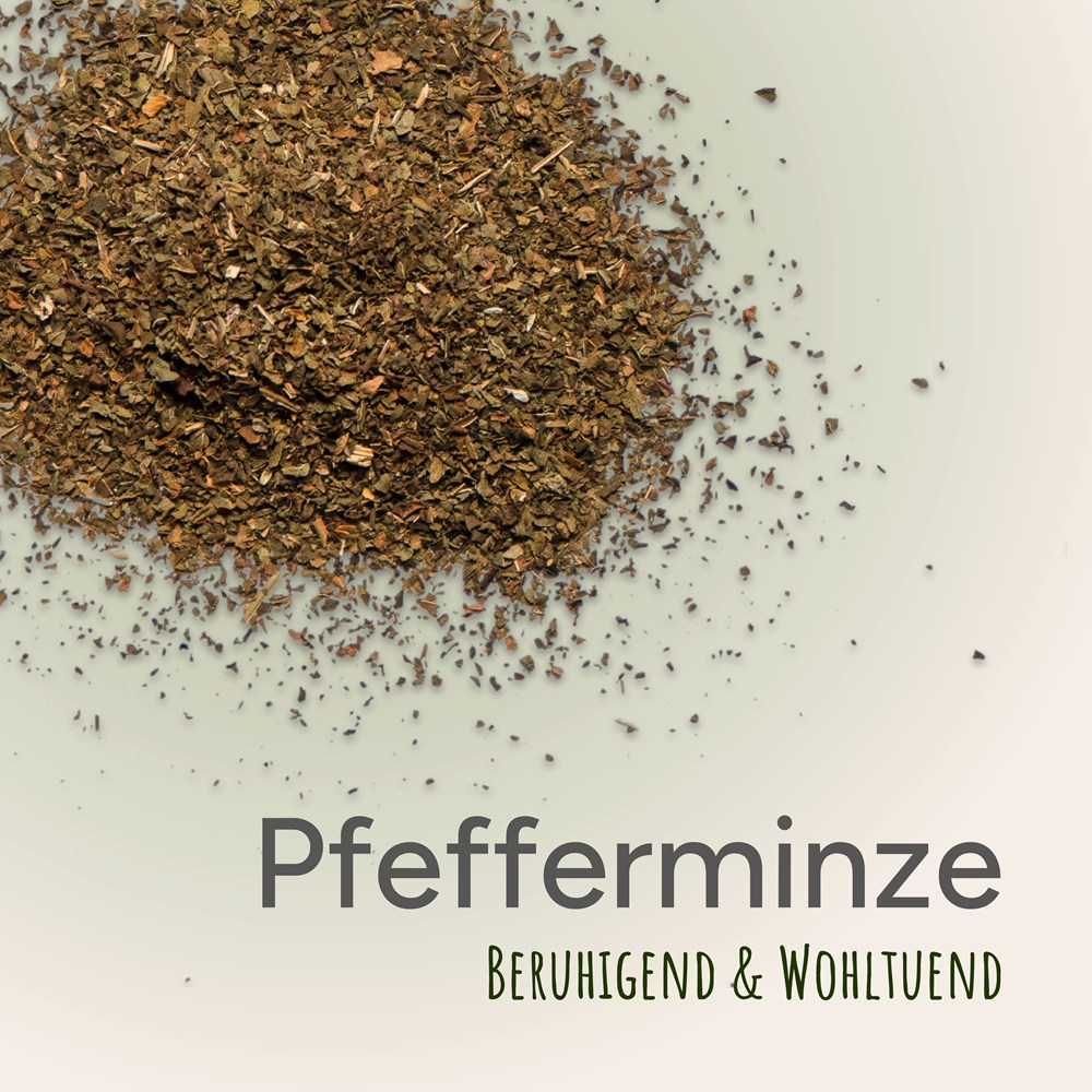 Sorte: Pfefferminze. Der wohltuende reine Pfefferminztee stärkt und beruhigt mit ätherischem Pfefferminzöl (Menthol).