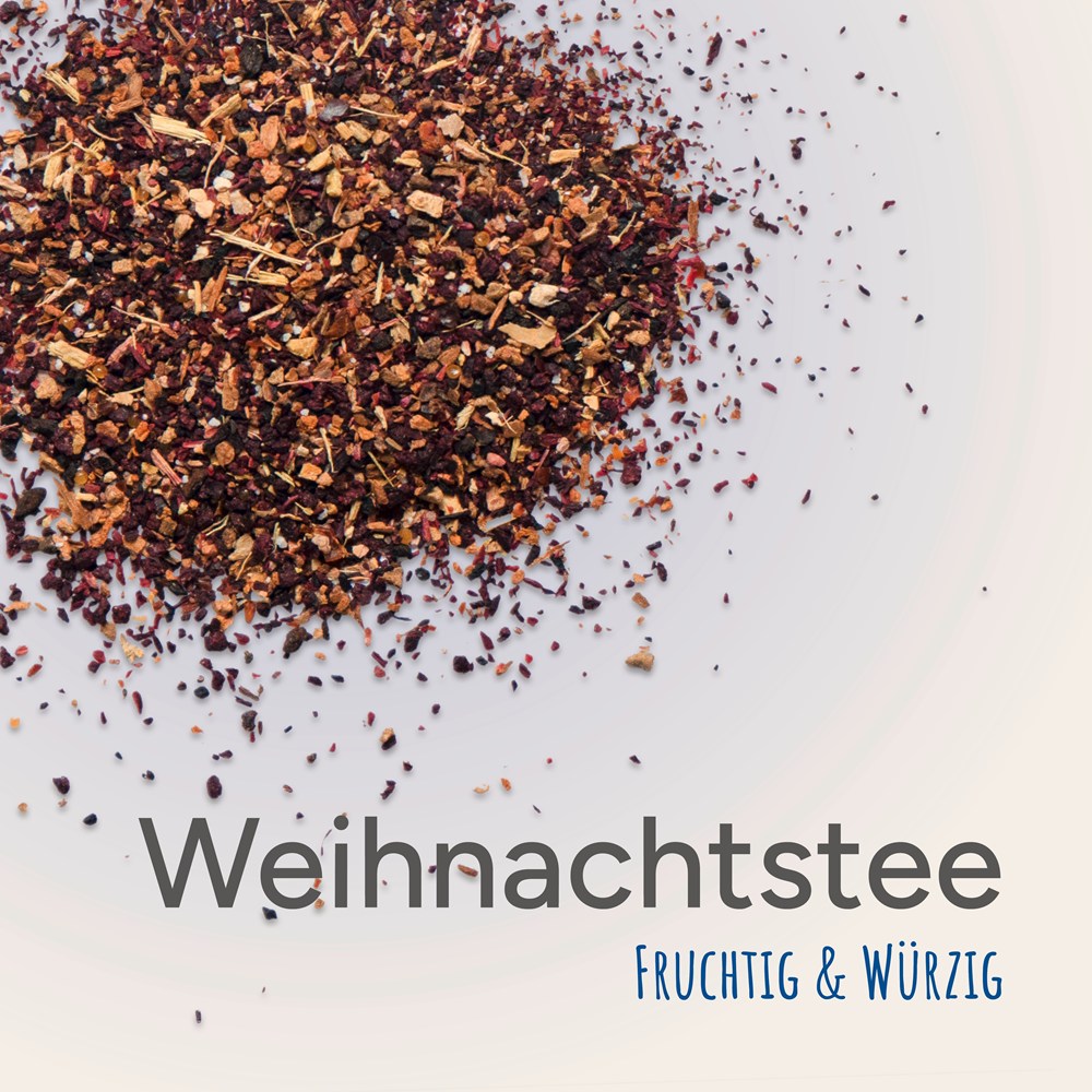 Sorte: Weihnachts-Tee. Winterliche Spezialmischung aus Apfel, Ingwer, Hagebutte, Süßholz, Zimt und Nelken: Ein wärmender Genuss zur besinnlichen Adventszeit. - 100% Bio Qualität!