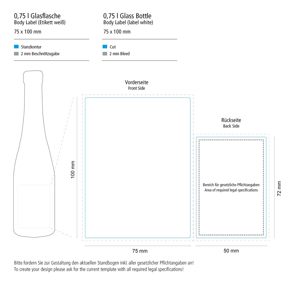 Dekoration: Body Label matt, edelmattes Etikett auf Vorder- und Rückseite der Flasche. Druck: 4c (CMYK)