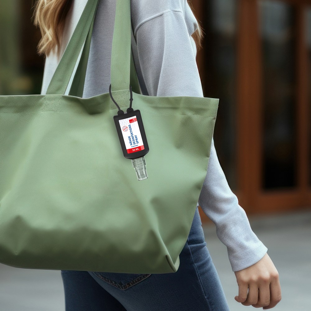 Hände-Desinfektionsspray (DIN EN 1500), 50 ml Bumper schwarz, Body Label (R-PET)