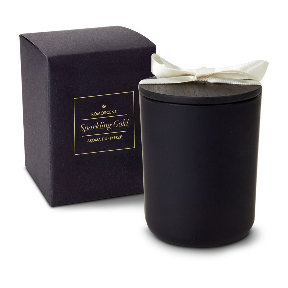 ROMOSCENT® Aromakerze Sparkling Gold, unbedruckt für Ihre Werbung