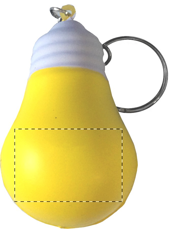 Antistress-Schlüsselanhänger in Glühbirnen-Form mit Metall-Schlüsselring.